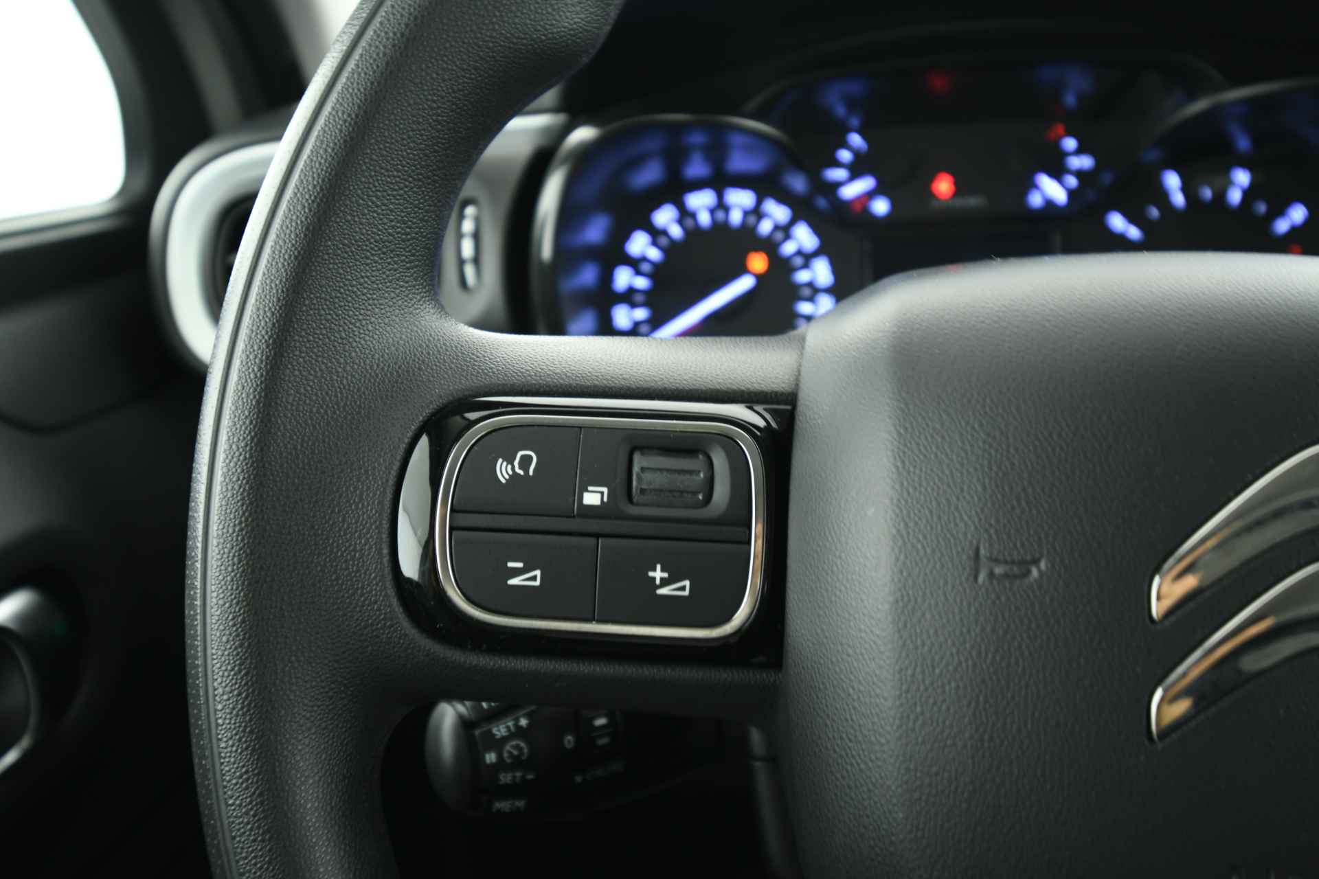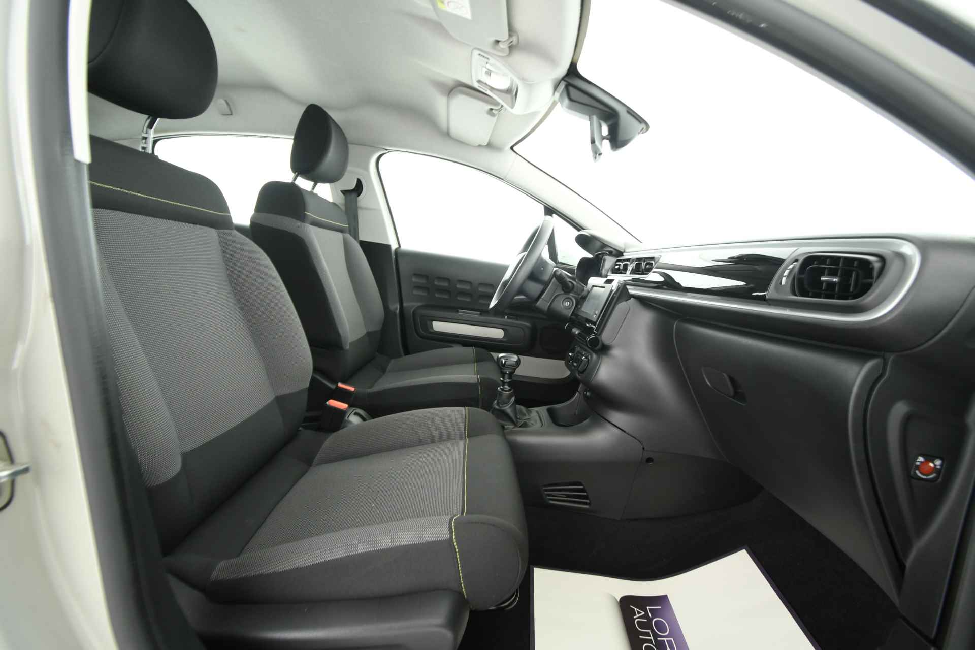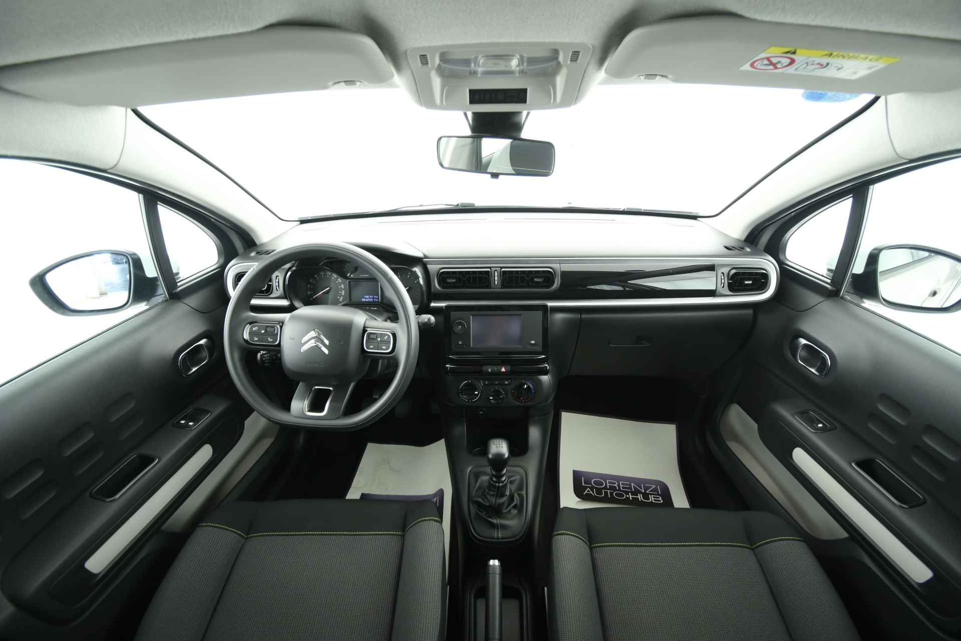 ESTERNI ED INTERNI: Vernice grigio “Soft sand”, Cerchi in lega da 15’’, Interni in tessuto nero e grigio con cuciture a contrasto, Computer di bordo, Display multifunzione interamente digitale e touchscreen da 7’’, Citroen Eco LED, Finiture montante posteriore bianco, Profili passaruota di colore nero, Retrovisori esterni regolabili elettricamente, Spoiler posteriore, Volante con decori Satin, Volante multifunzione in pelle e Isofix.